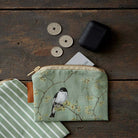 This purse with birds and a green striped inner lining is just what you need for your essentials. In the purse there is room for banknotes, coins, cards and receipts. If you are on the go, there is also room for a headset or a small lip balm.