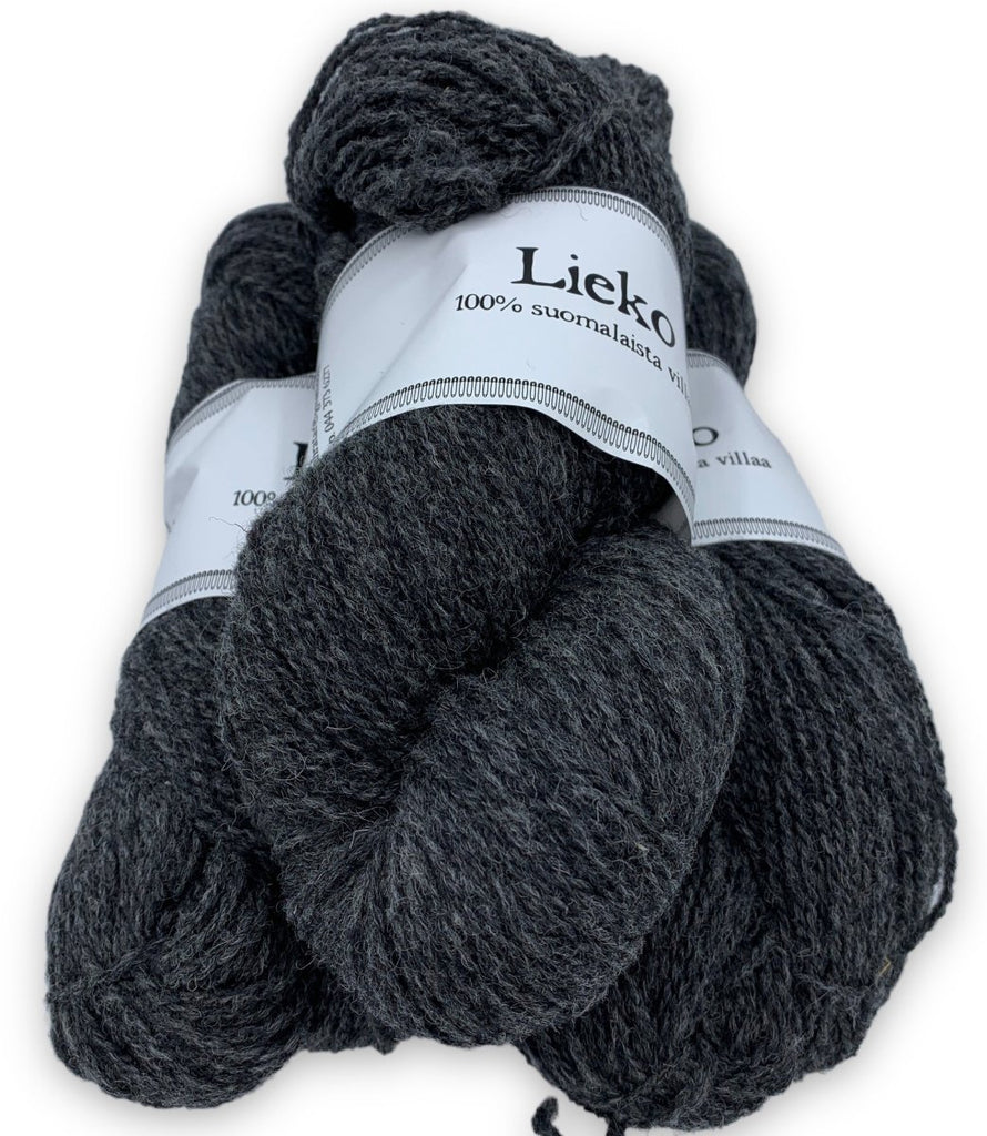Lieko wool is spun from fibers of different shades, which gives it its slightly gray appearance;