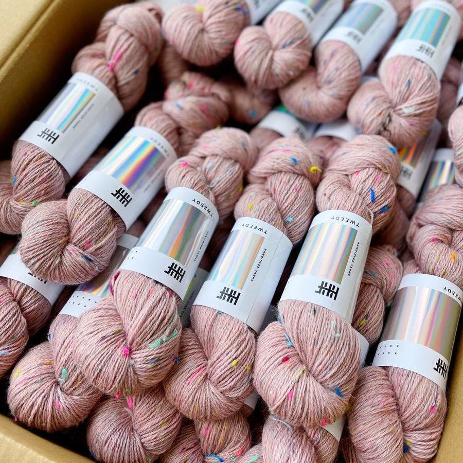 Based on an original idea by Hedgehog Fibers, it is a blend of Falkland Island merino yarn, recycled yarn, and yarn scraps collected over several years by the manufacturer.
