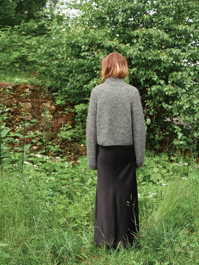 Tia Zipper Jacket in Sunday and Tynn Silk Mohair – a soft and modern half-patent cardigan with a zipper. Worked from the top down with one strand of each yarn for a light, warm and exclusive feel. Just as cool with a dress as with jeans or sweatpants.