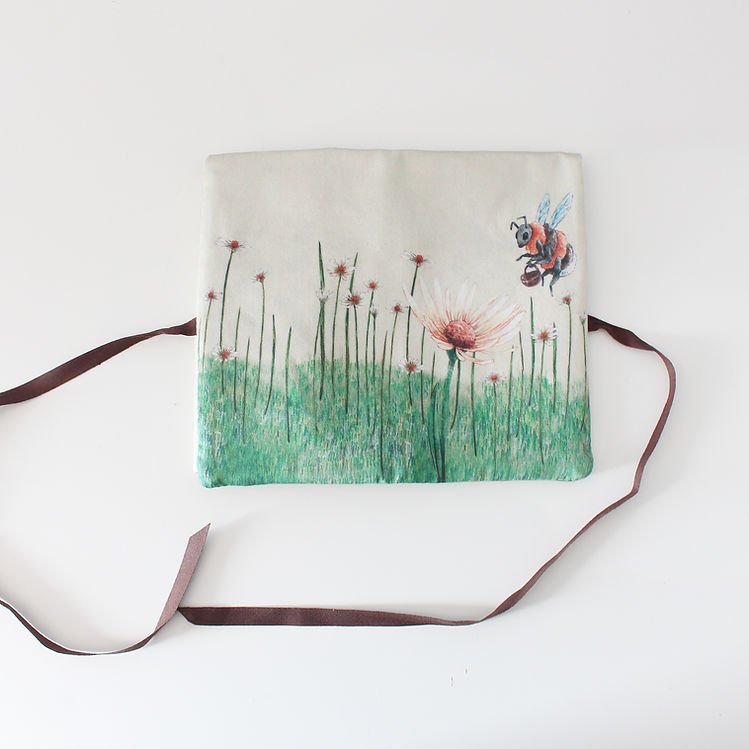 The exterior features a unique illustration by The Blue Rabbit House. The illustration is printed on 100% organic cotton. The interior is made of 100% cotton.