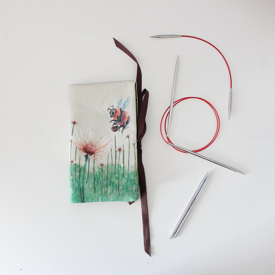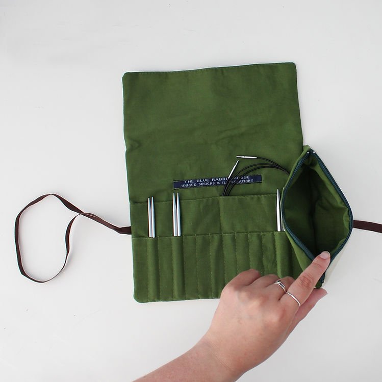 There are 11 slots measuring approximately 1.5 cm and 2 slots measuring 2 cm for needles/hooks/pencils and 2 slots measuring 10 cm for cables or a few interchangeable needles.