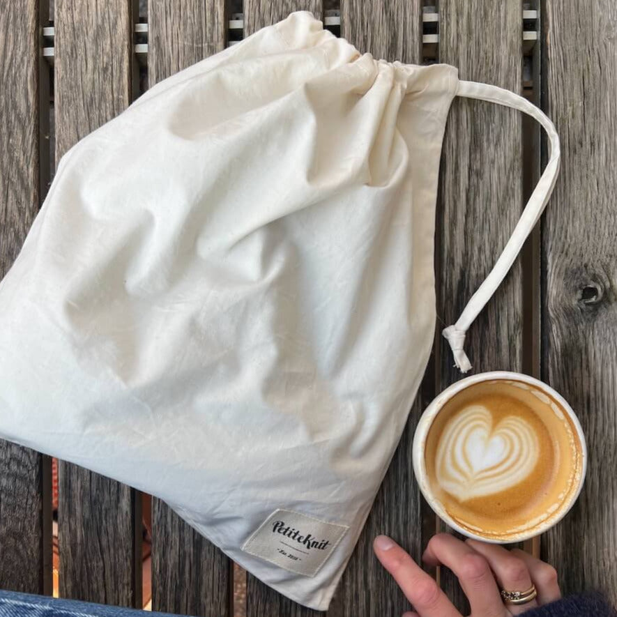 Le Sac à projet PetiteKnit est en popeline douce et biologique.
