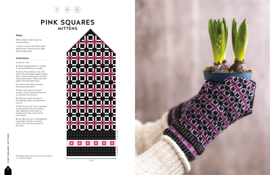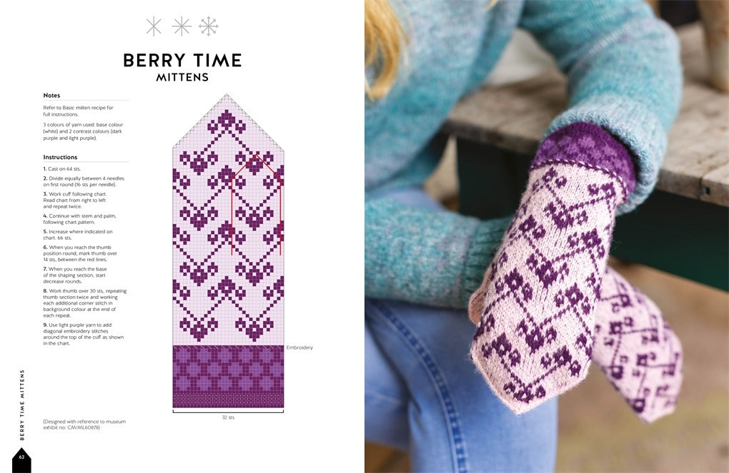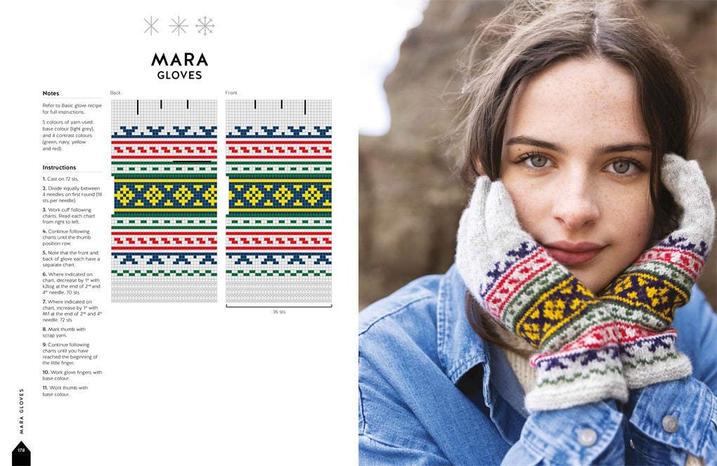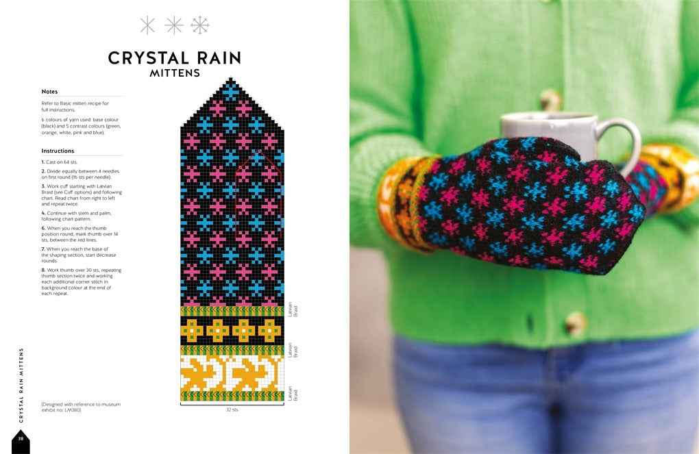 La collection comprend 100 modèles différents avec de grands nuanciers pour chaque motif, ce qui vous permet de suivre facilement même les modèles les plus élaborés. Vous y trouverez des instructions pour les modèles de base de mitaines, gants et mitaines sans doigts, ainsi que des instructions étape par étape et des illustrations pour des techniques telles que la formation du pouce, les tresses lettones et d'autres techniques de finition des poignets, y compris les franges et les encoches.