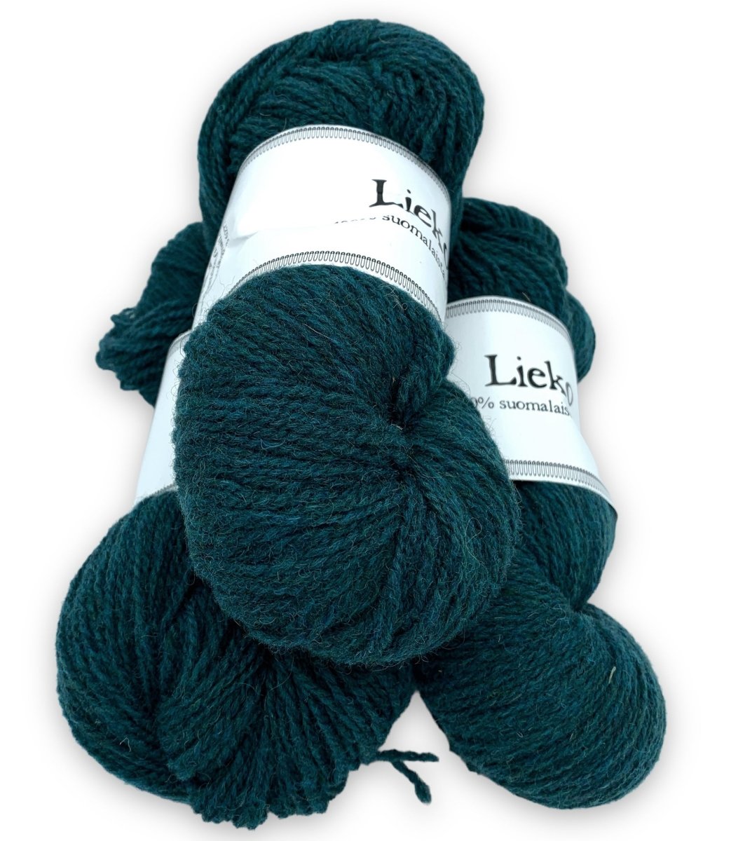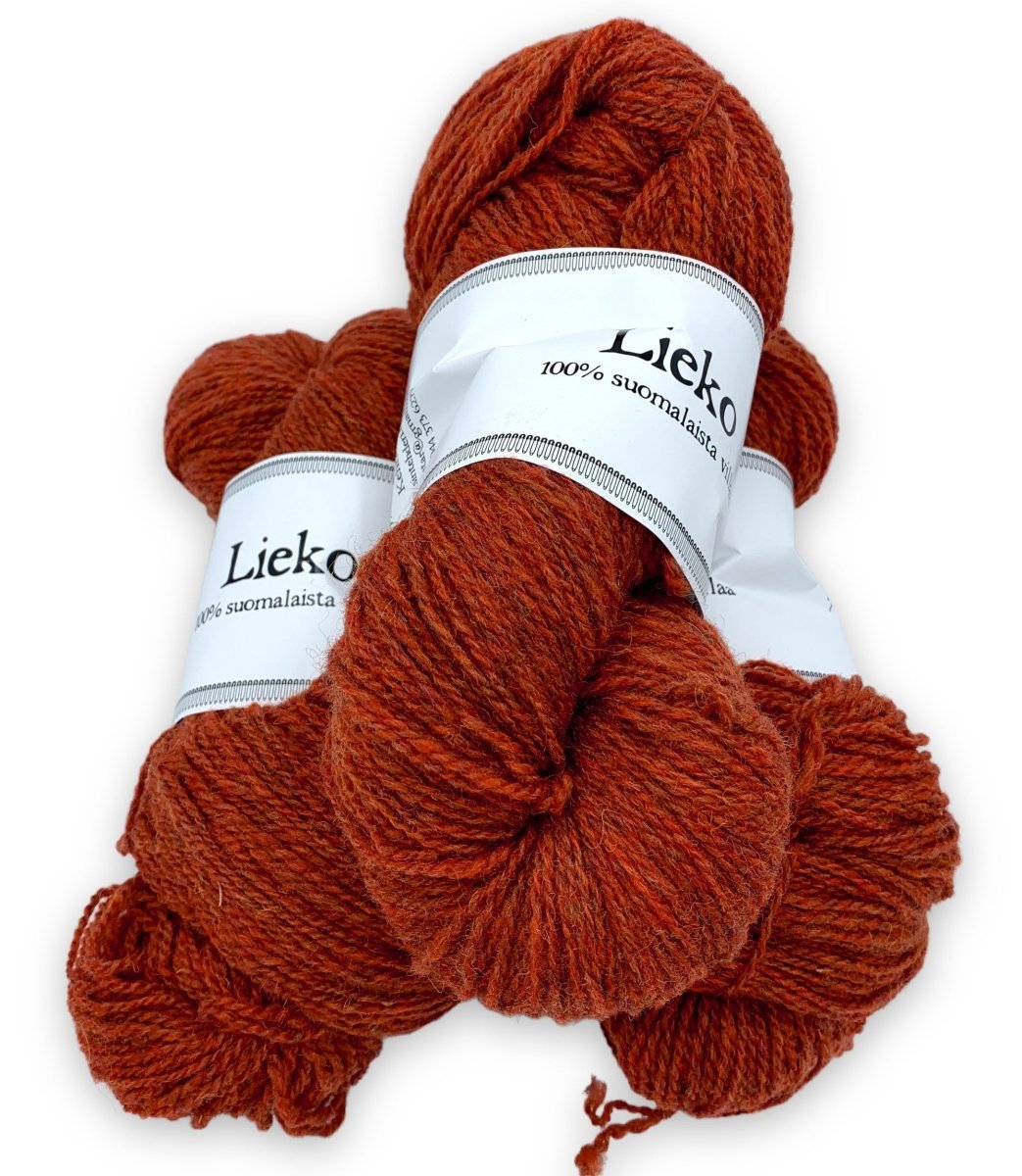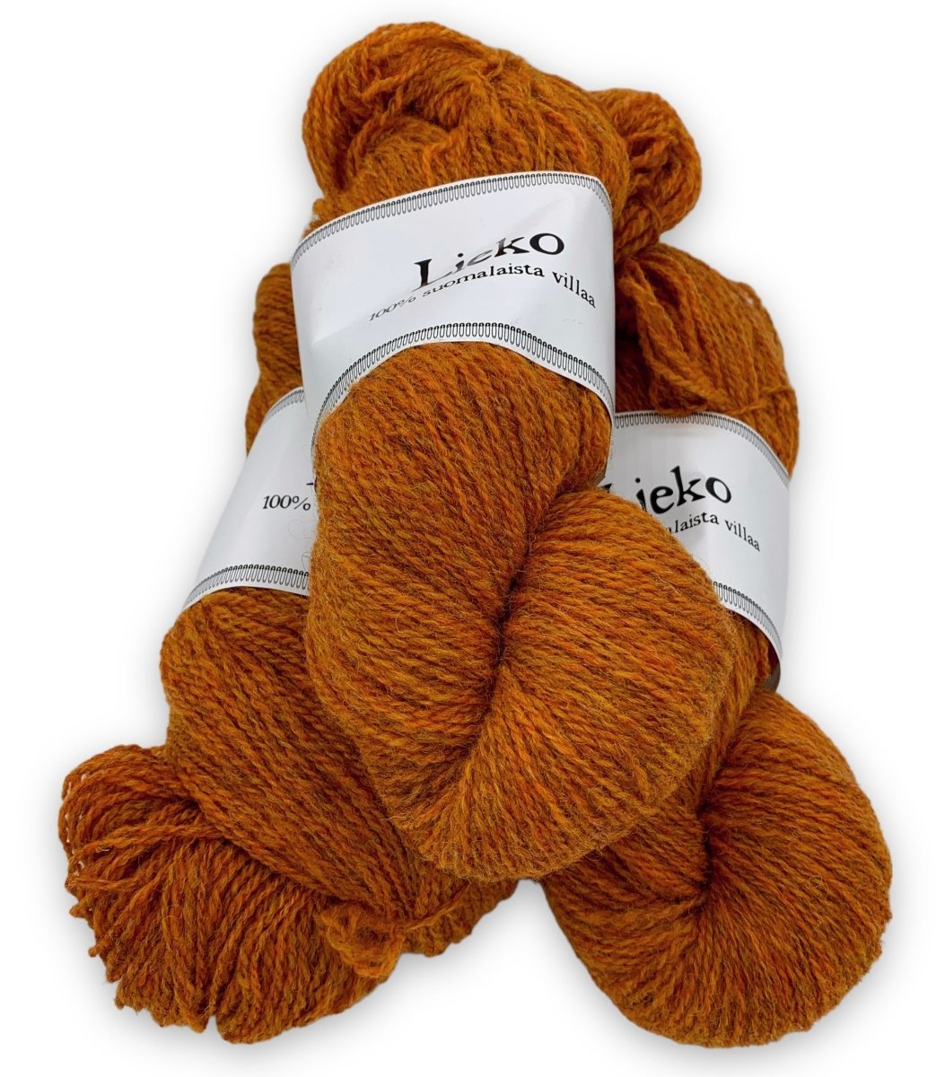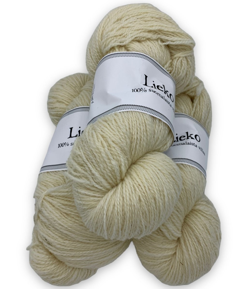 100 % laine finlandaise, 2 brins, plutôt douce pour une laine de Pays et gonflante.