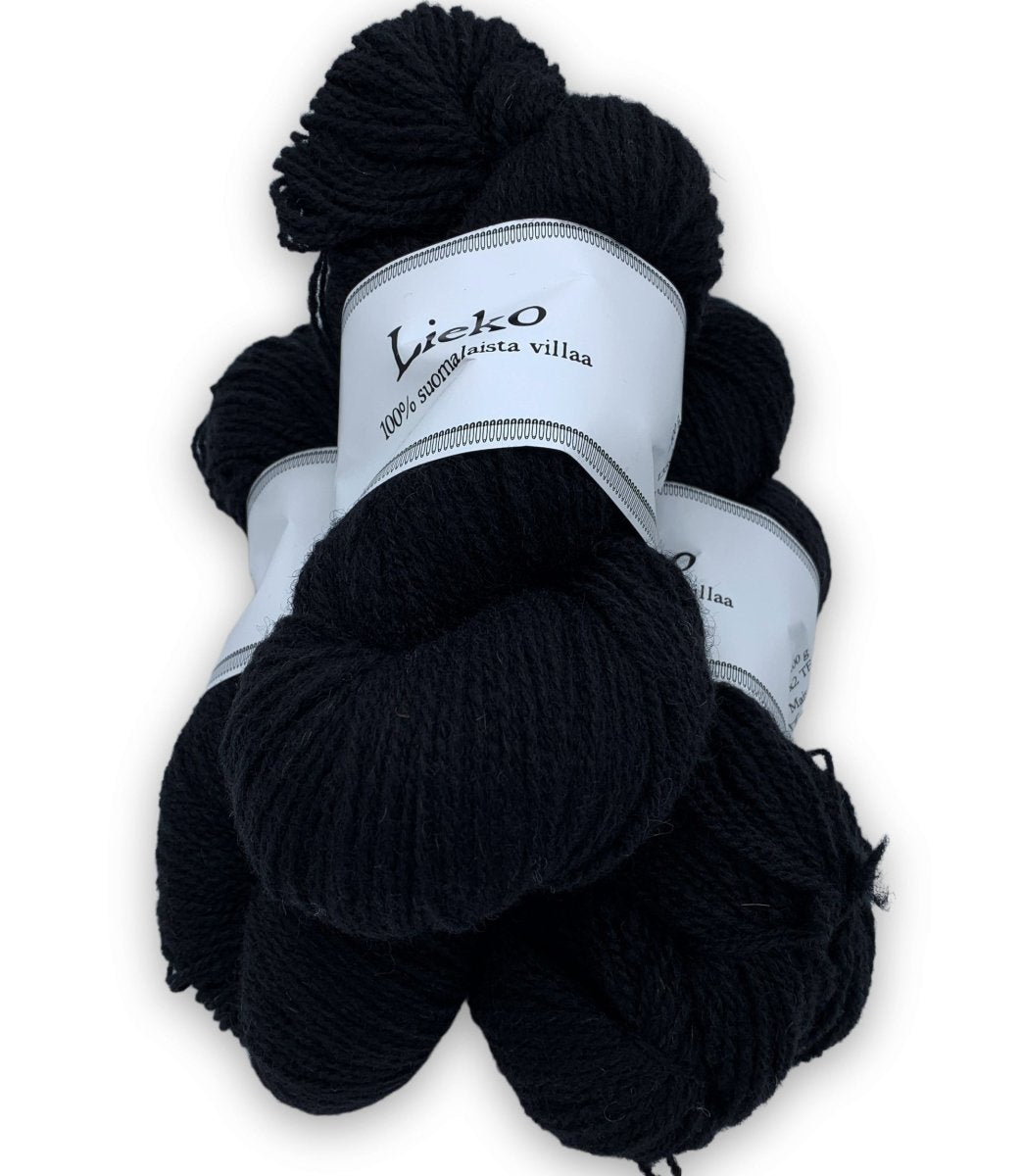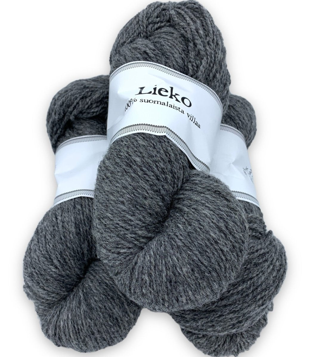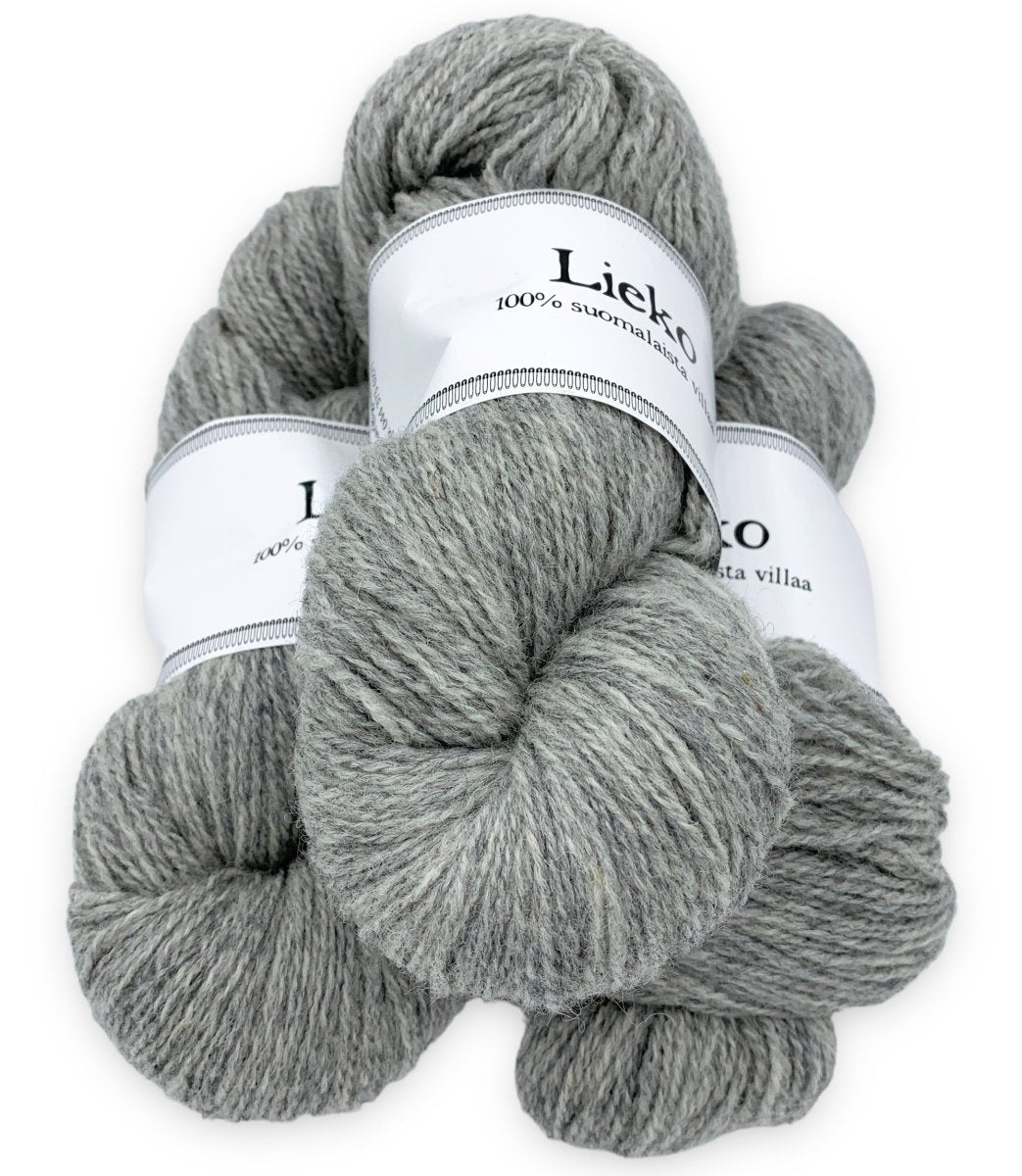 La laine Lieko est filée à partir de fibres de différentes nuances, ce qui lui procure son aspect légèrement grisé;