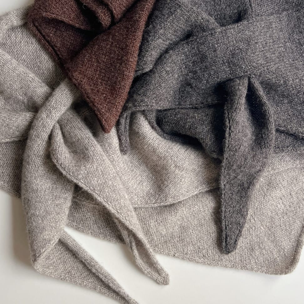 Magdalenasjal est un châle triangulaire élégant, avec des bords roulés fins et une petite ouverture. Il est tricoté en aller-retour au point jersey, avec des mailles simples sur les bords qui empêchent ceux-ci de se resserrer.